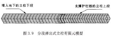 根據我國現行的《高速公路交通安全設施設計及施工技術規范QT;J074一94)》,立柱的總高是工$50mm,其中1100mm是埋在地底下的.第一類圓柱立柱模型是以外徑為114mm,厚度為4. 5mm的圓柱型鋼管為原型建立的1291。幾何尺寸如圖3.6所示,有限元模型如圖3.7所示。